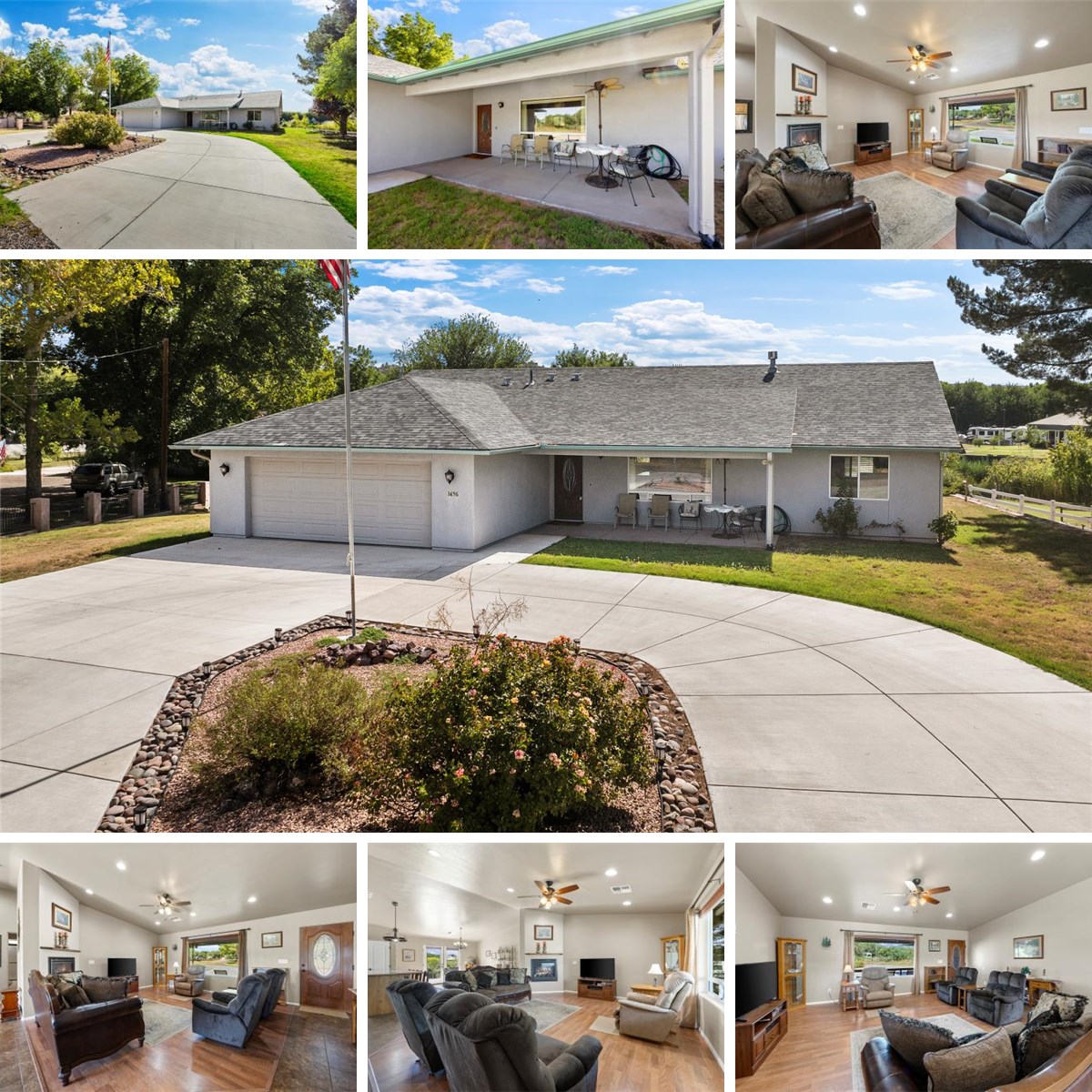 Phenomenal one owner home tucked down in a greenbelt area in Camp Verde, this 1841 square foot home, built in 2014 on a total of 2.9 acres (2 separate parcels) with the lower parcel having irrigation and an orchard of your own to enjoy! 3 large bedrooms, split floor plan, 2 bathrooms, open concept living, large kitchen island, dining and living space with a gas fireplace stove to help keep you nice and toasty in the coming cooler weather. Glass doors open to covered back porch with built in BBQ, leading to your own oasis and view. Home has an attached 2 car garage, but you also have a separate fantastic 768 square foot workshop/garage! Imagine the projects! Plenty of room to park your RV, boats, extra cars, trucks and toys. Back property can have river access, fencing on three sides of the property, additional shop/garage has covered back area for additional work space or storage. Laundry room has extra cabinets for storage and a laundry sink. Home has central vacuum system, (buyer to verify function, sold as-is) and an additional laundry sink.
