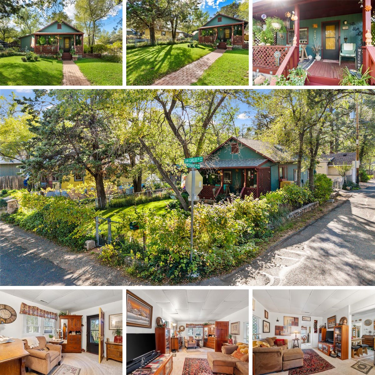 Adorable dream cottage in downtown Prescott. Located in the desirable Park Ave area off Coronado, with cool mature trees and lush mature vegetation. Easy access to hike Thumb Butte or short walk to festivities on the downtown square and Whiskey Row. Visit with friends on the large tree shaded covered deck. Welcome them into your cozy living room with the charm of yesterday. Knotty pine cabinets in the kitchen and tongue and groove ceilings, crown moldings are just some of the features that make this home. Fenced yard and quaint rear patio let you enjoy garden time with herbs, flowers and veggies. Storage shed and off street parking add one more plus! Roof new in 2020, new exterior paint in 2021, new water heater in 2025.